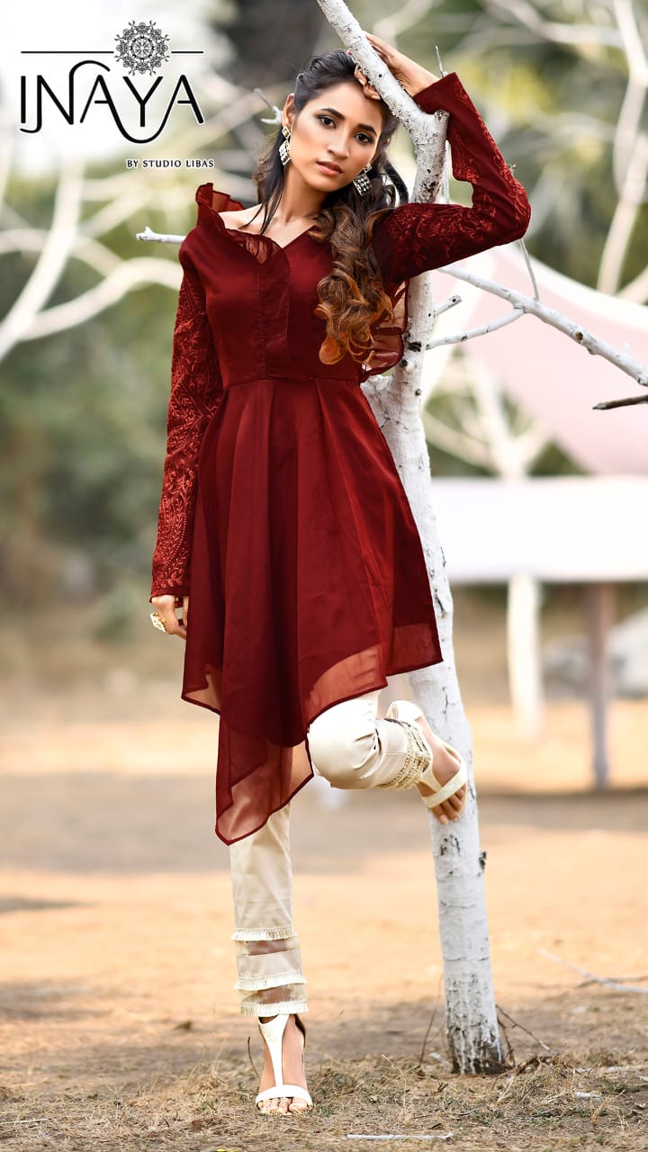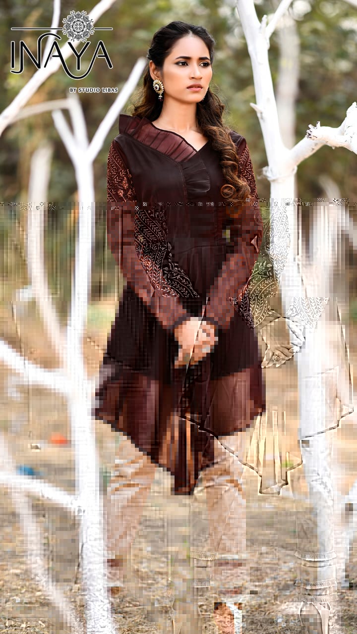 Designer Organza Tunic Colar Brown Brick Rust Mehendi Green Size L ML XL